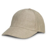 Lightweight five panel cap made from polyester with a natural linen-look finish. It has embroidered eyelets, a pre-curved peak, a sweatband and an adjustable PU closure with a smart brass buckle that allows one size to fit most people.
