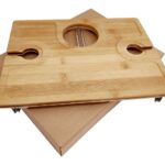 As the name suggests, Picnic For Two is the perfect companion for sunny days in the park, on the beach or when you’re out and about. This ingenious cheese and wine table is designed to hold two wine glasses and a wine bottle in place, together with a selection of cheese and accompaniments. This cheese board features our unique folding design and is crafted from 'eco-friendly' bamboo and is supplied laser engraved with your logo and presented in a natural coloured gift box. Because of the unique nature of bamboo, the product and engraving colour may vary from item to item. As this product is hand crafted, each Picnic For Two may differ slightly in shape and size.