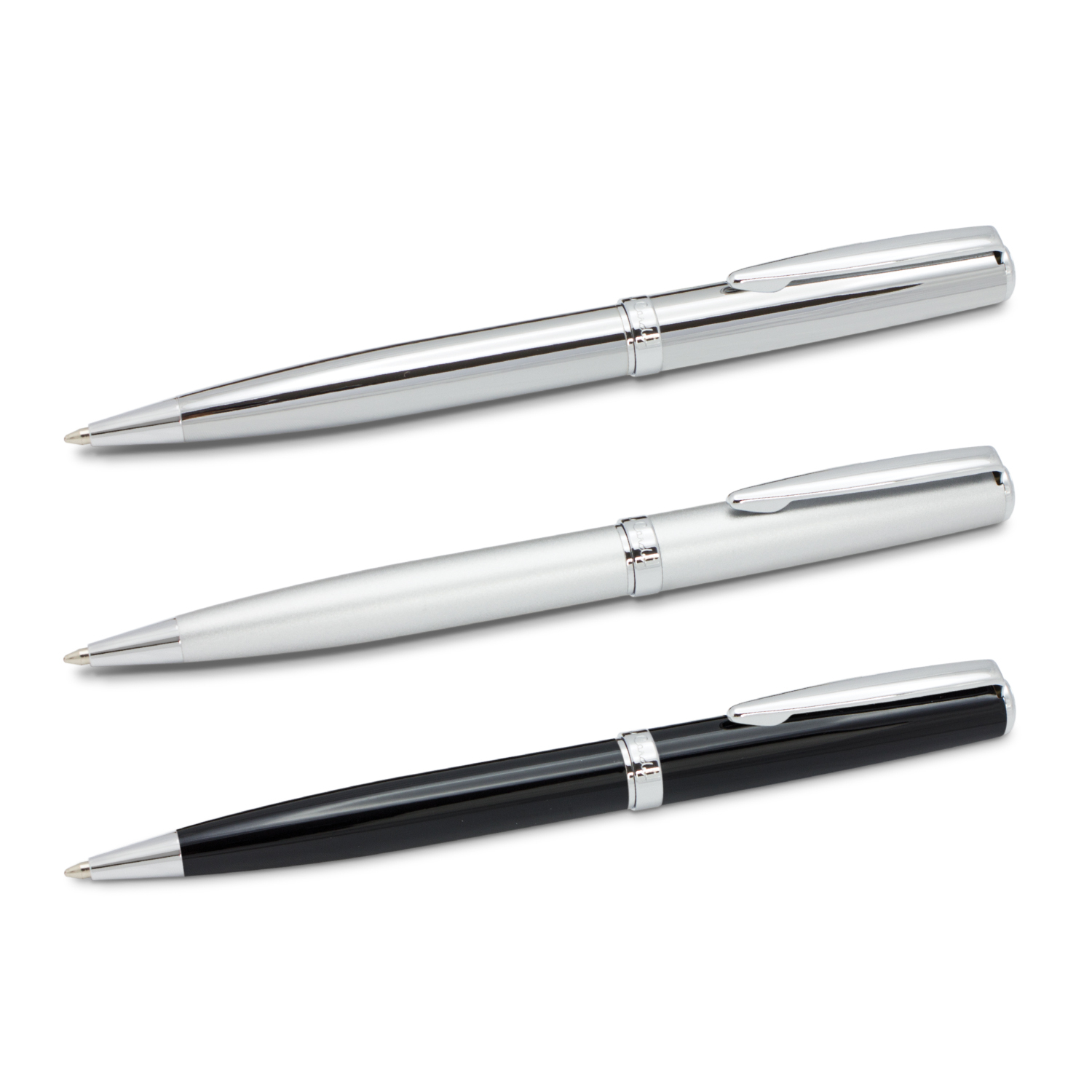 Timeless, classically designed brass ball pen with a silky smooth twist action and shiny chrome accents. The barrel is finished in the choice of lacquered black and matt silver which engrave to a silver mirror finish or a stunning electroplated shiny chrome which engraves to a natural etch. Calais has a black ink large volume refill with 4000 metres of German manufactured DOKUMENTAL ink and a tungsten carbide ball for improved writing quality. It features the Pierre Cardin logo tastefully engraved on the centre ring and can be presented in an optional velvet sleeve or a superb Pierre Cardin gift box.