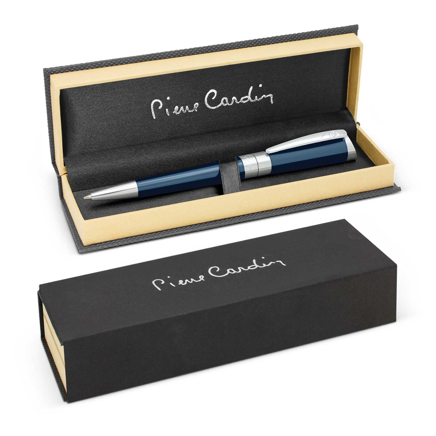 Evolution is a triumph of contemporary design and classic French elegance. It has a silky smooth twist action and a lacquered brass barrel which is highlighted with shiny chrome accents. The black ink large volume refill has 4000 metres of German manufactured DOKUMENTAL ink and a tungsten carbide ball for improved writing quality. Evolution features the Pierre Cardin logo tastefully engraved on the centre ring and the barrel laser engraves to a silver mirror finish. It can be presented in an optional velvet sleeve or a superb Pierre Cardin gift box.