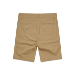 Slim-Regular fit, chino shorts, 2 side pockets, jet pockets at back, mid weight, 250 GSM, 98% cotton 2% elastane, belt loops on waist, button closure, anti-brass metal YKK zip fly, preshrunk to minimise shrinkage