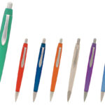 Push action plastic ballpoint pen with an attractive frosted barrel and a sweeping matt silver metal clip. It has a silver tip and trim and comes with a Parker style black refill.