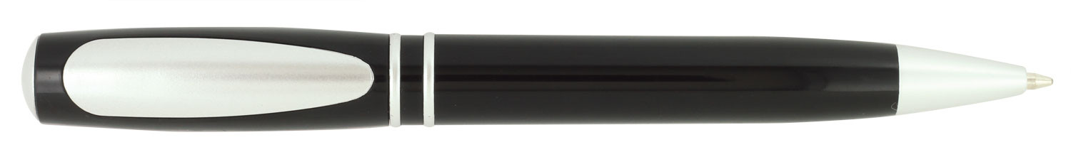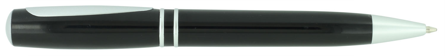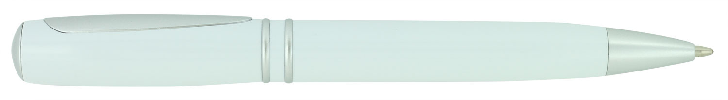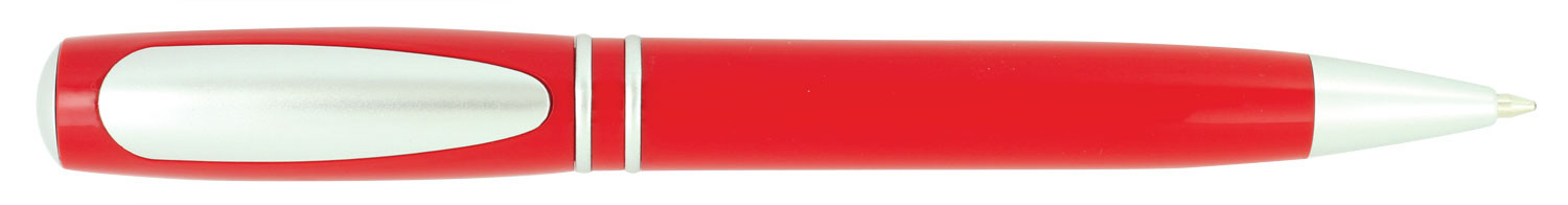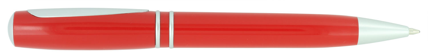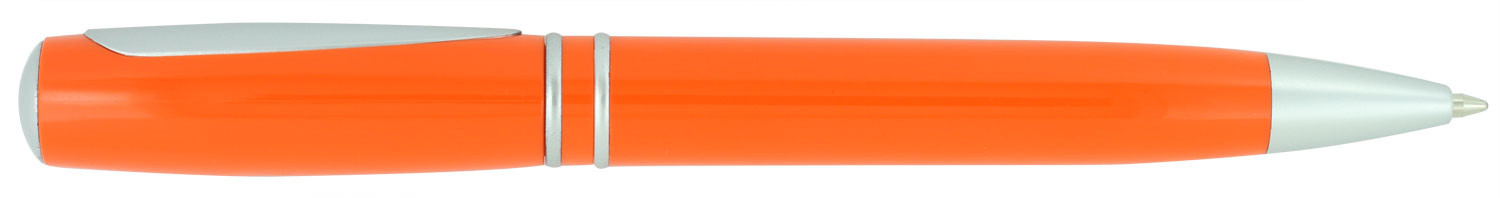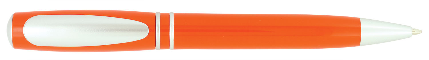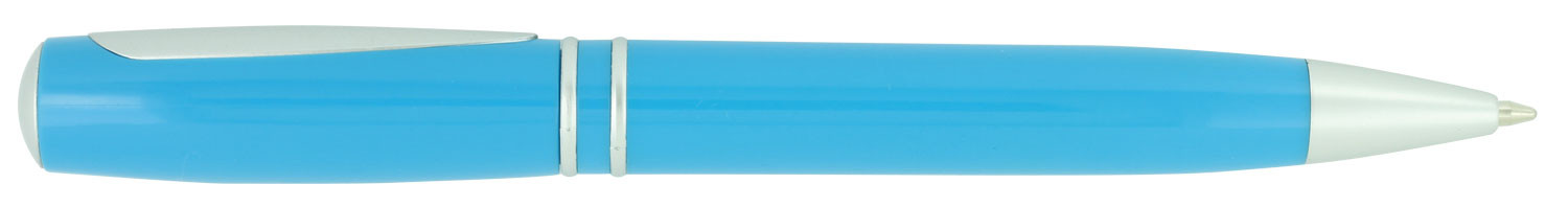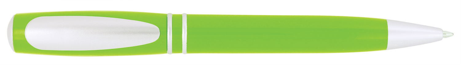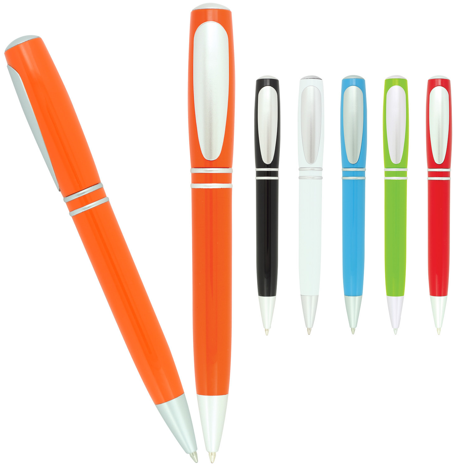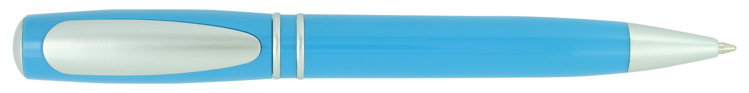 Twist action plastic pen in contemporary colours with silver clip and trim. Blue ink.