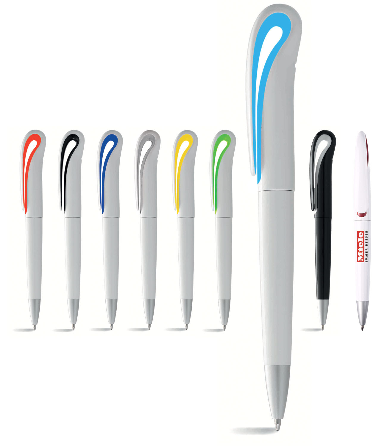 Plastic Pen Twist Action White Barrel And Coloured Trim Swansea