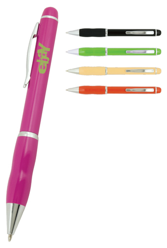 Sophisticated twist action plastic pen in bright fashion colours. Along with a Chrome clip and fittings this pen has an ergonomic grip. Parker style black refill.