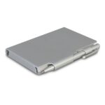 Pocket size note book with an 80 page pad in an impact resistant hard plastic case complete with a pen. Decoration options: Pad Print | Screen Print | Direct Digital
