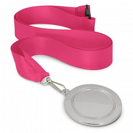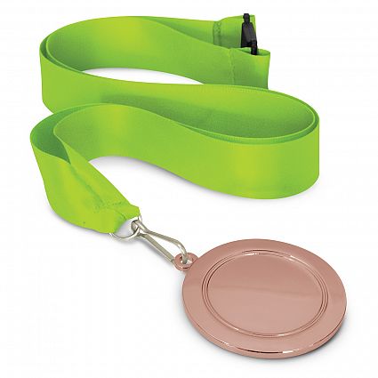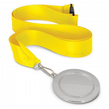 65mm diameter medal which is available in gold, silver and bronze. It can be ordered in one colour or a combination of colours at no extra cost. The medals are branded with the choice of Laser Engrave or a full colour Resin Coated on the front and Laser Engrave on the back. Each medal is supplied with a ribbon lanyard which has a safety clip and can be branded in one colour on one side. The medals laser engrave to a natural etch.
