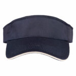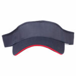 Fabric: Polo twill visor Features: 3 panel crown, self fabric sweatband & short crossover velcro Available in plain or sandwich colour