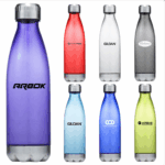 A 700ml AS plastic water bottle with stainless steel cap and base. Perfect and stylish for carrying cold drinks on the go. All Bottles are 100% BPA Free, hand wash only, and not for use in freezer. Material: Stainless Steel & AS Plastic