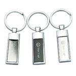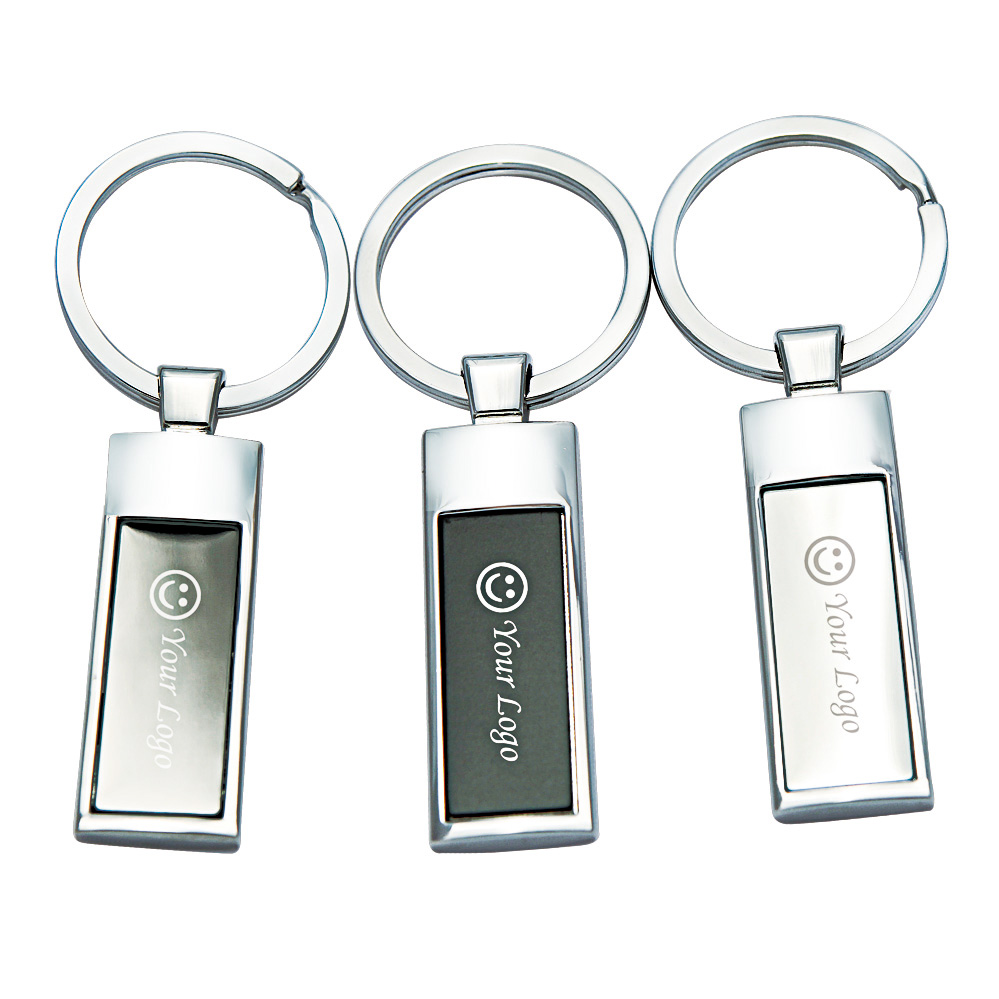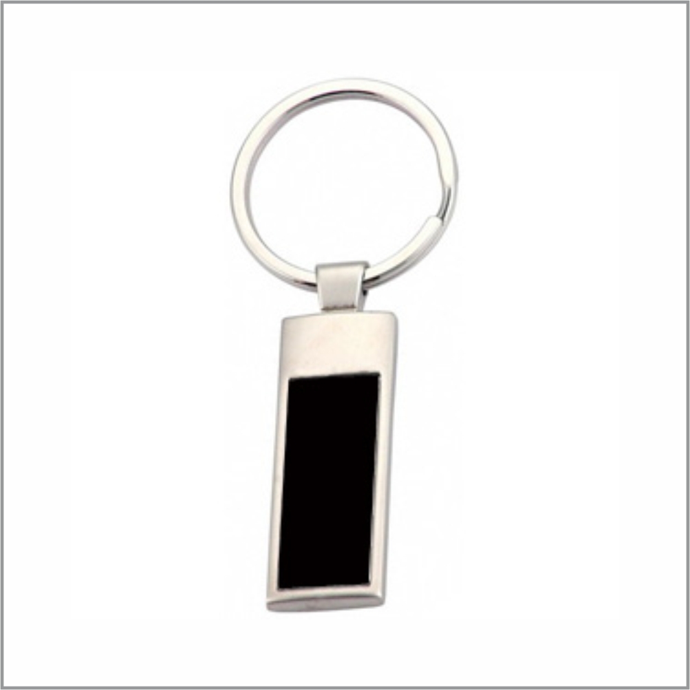 Metal key chain, body in shiny nickel with black aluminum plate or shiny black plate or brushed steel plate.