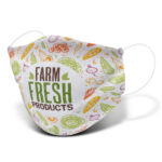 Large reusable face mask which provides protection with two layers of 140gsm polyester. It can be branded with stunning edge-to-edge full colour print and is easily reused by hand washing it in warm water. Comfortable elastic ear loops hold the mask securely in place and both the ear loops and inside layer are white. This face mask is manufactured for use in the home or for recreational or occupational use and it is supplied in an individual polybag which is labelled with care instructions. A production lead time of 15 working days applies to this product by air freight and larger orders can be sea freighted on request to reduce the freight cost.