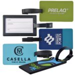 Luggage tag with black flexi PVC strap with moulded PVC 2D or 3D custom design on front. Back has black rigid plastic frame with clear window featuring removable paper label for contact details. We'll match the PVC to within 10% plus or minus of your Pantone® Colour choice.