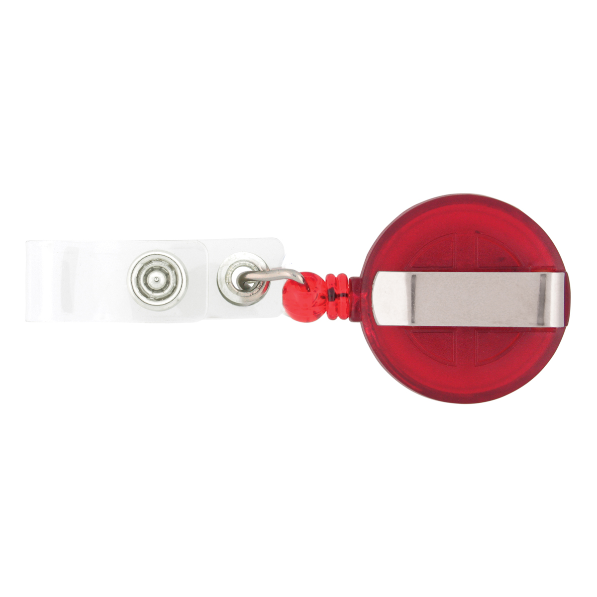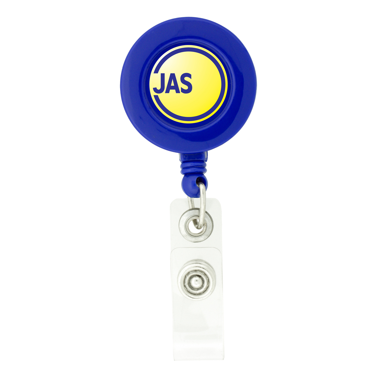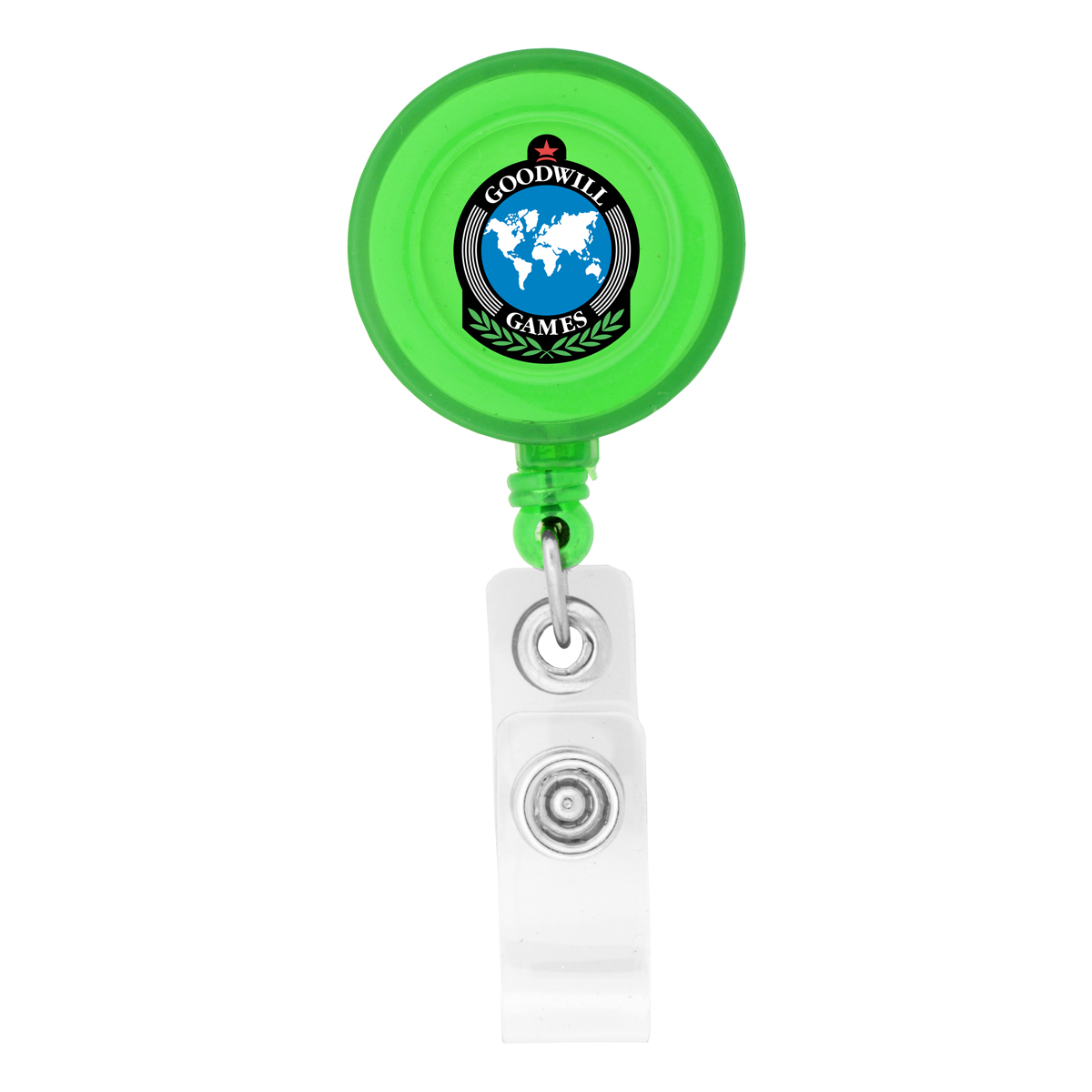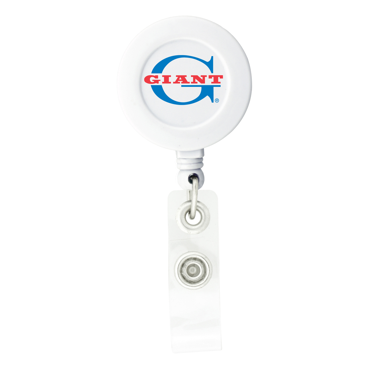 A 838mm retractable badge reel with a metal pocket clip on the back. Imprint directly on the badge holder or have a full colour digital insert.