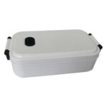 This stylish and sturdy lunchbox fits perfectly with a healthy lifestyle! It is big enough for carrying sandwiches and delicious salads, but also for heating up your warm meals. Made from recycled PP material, it has a silicone air opener on the lid which makes the lid easy to open. Double handles to close the lid tight. Capacity 1.5 liters. Handwash recommended. BPA free and Microwave safe. Perfect size for every school bag.