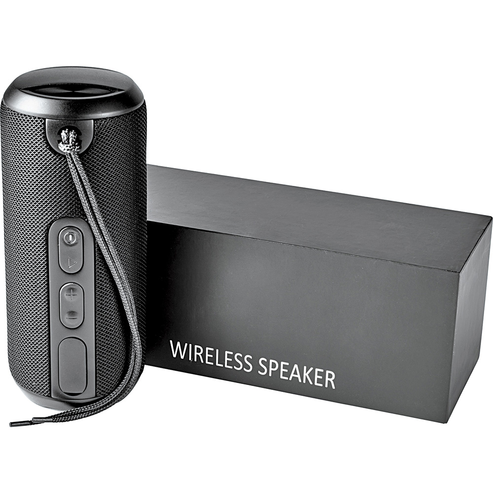 Enjoy your favorite music regardless of your location!! Take the Rugged Fabric Waterproof Bluetooth speaker with you to the pool, on your hike, or to your next house party. The ten watt output (2 x 5W) and digital sound processor is capable of filling any location with quality sound. The Rugged Fabric Waterproof Outdoor Bluetooth Speaker has a waterproof rating of IPX6. Which means it can be left in a rain storm or fall into a body of water without any damage being done. Included is a micro USB charging cable and carrying string. Bluetooth working range is 10 meters (33 feet). Enjoy up to 4 hours of music at max volume on a single charge. Charging time: 2.5hrs. Built in Microphone and Music Controls for hands free operation.