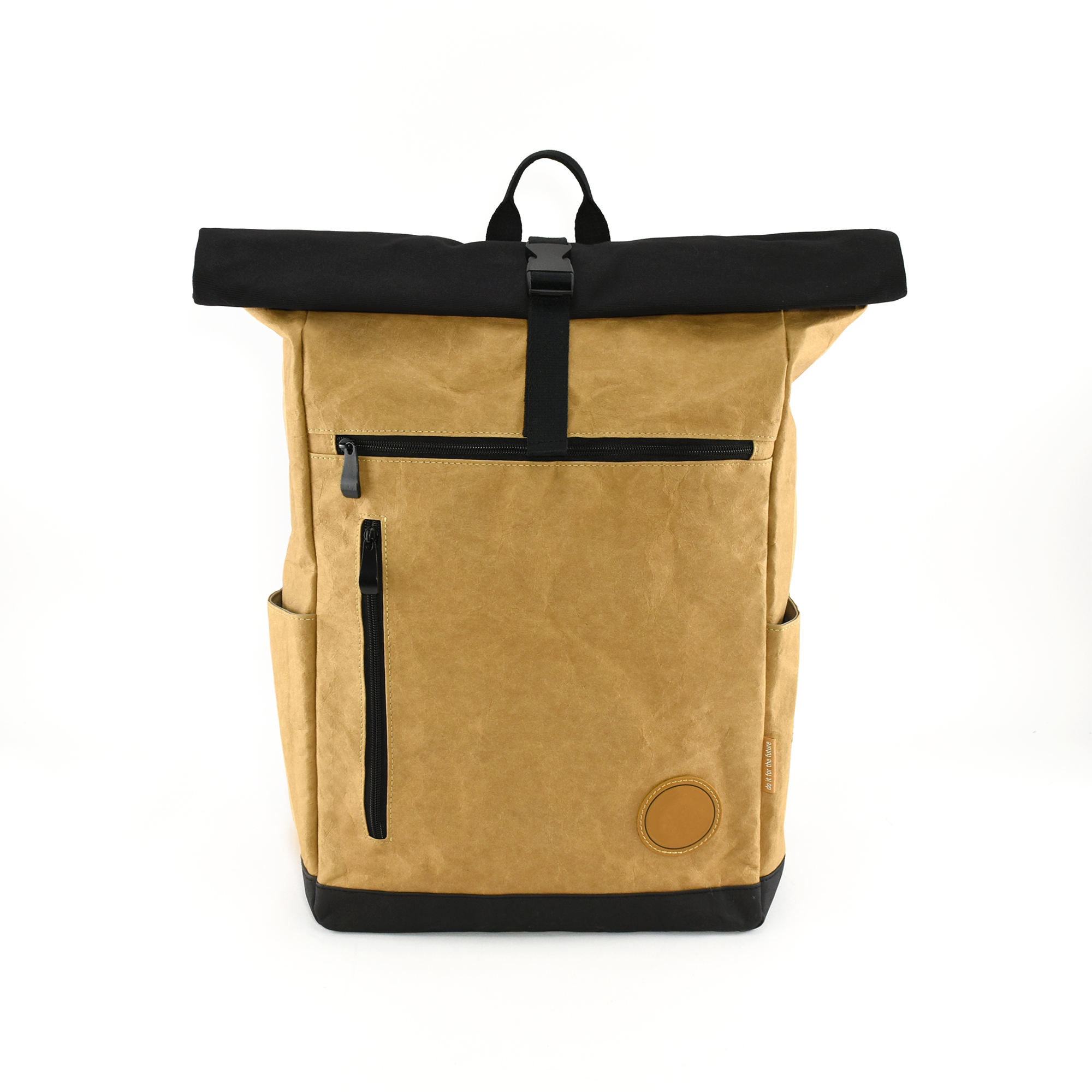 Seaside Kraft Paper Laptop Backpack is made of German 0.55mm washable kraft paper with canvas lining, it combines durability, functionality, and style, making it suitable for various purposes, including work, school, travel, or daily use. Along with the unique black canvas top, adds a distinctive touch to the backpack's design. The multiple pockets and compartments provide ample space for organizing essentials, while the comfortable back panel and adjustable shoulder straps enhance overall wearability. The addition of side water bottle pockets makes it convenient to carry hydration during daily activities or travel.