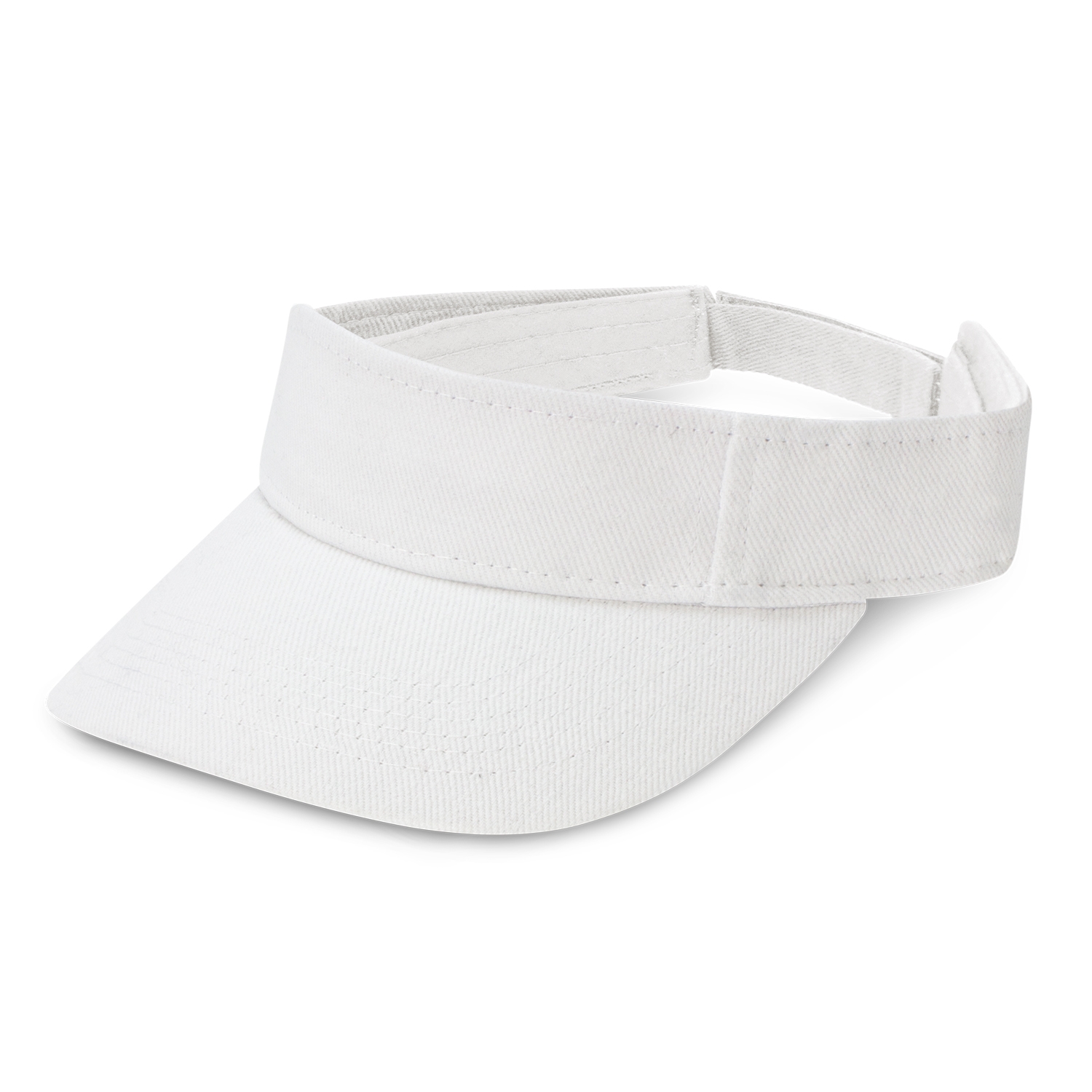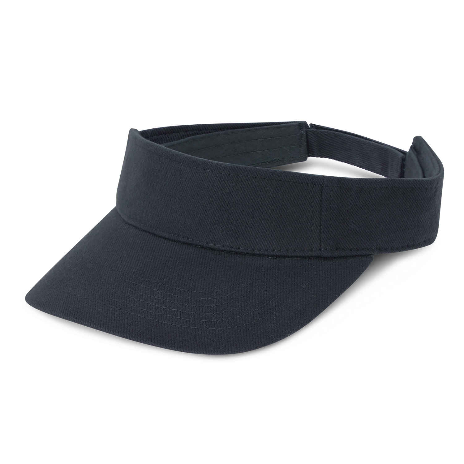 Premium quality heavy brushed cotton sun visor with a pre-curved peak, a sweat band and an adjustable Velcro closure which allows one size to fit most people.