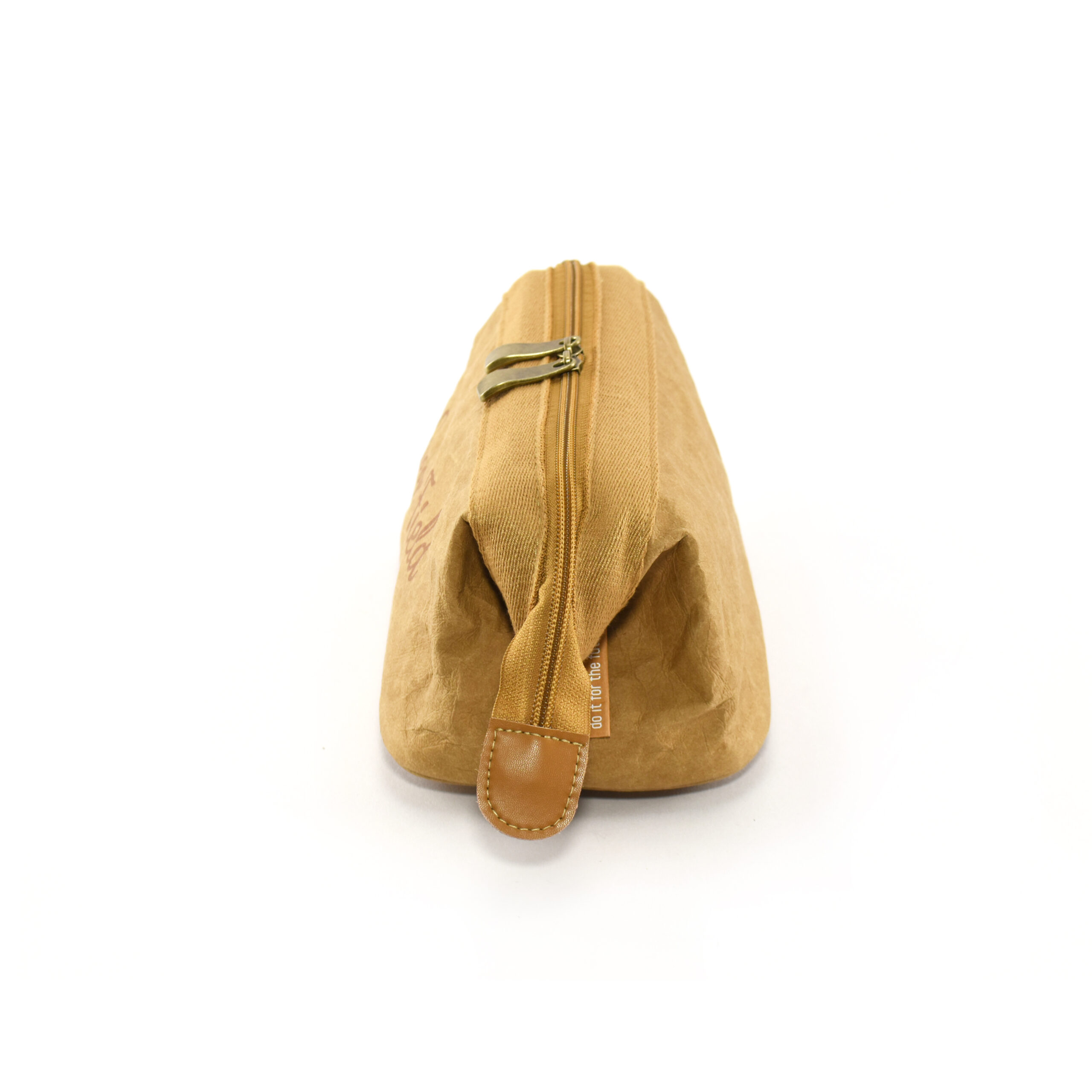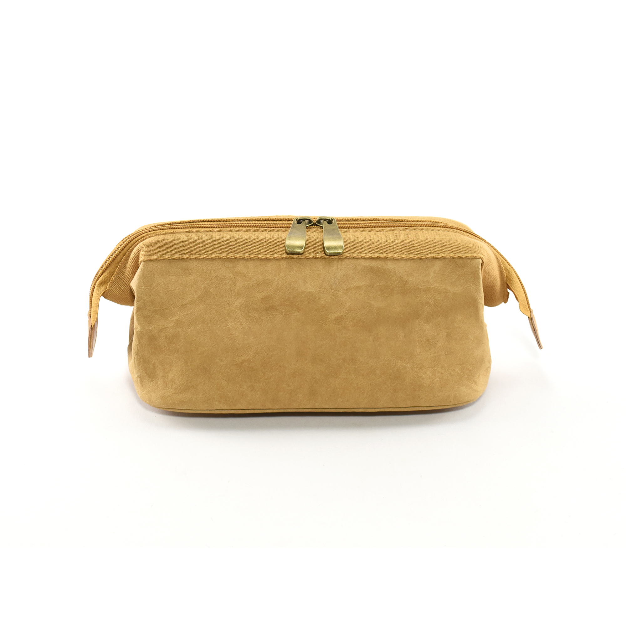 Shanklin Kraft Paper Cosmetic Bag is manufactured from German 0.55mm kraft paper, designed to keep your cosmetics organized and easily accessible. The use of washable kraft paper gives it a unique and natural look, while the gray canvas lining adds durability and protection. The double brown metal zipper pullers enhance the bag's aesthetic appeal and functionality. With its spacious size and reliable zipper closure, along with the inside zipper pocket, this cosmetic bag is a practical and stylish companion for organizing and carrying your essential cosmetics and toiletries in a neat and organized manner. Whether you're traveling or using it daily, this bag is a reliable choice to keep your cosmetics safe and in order.