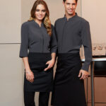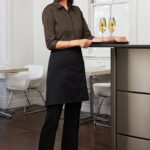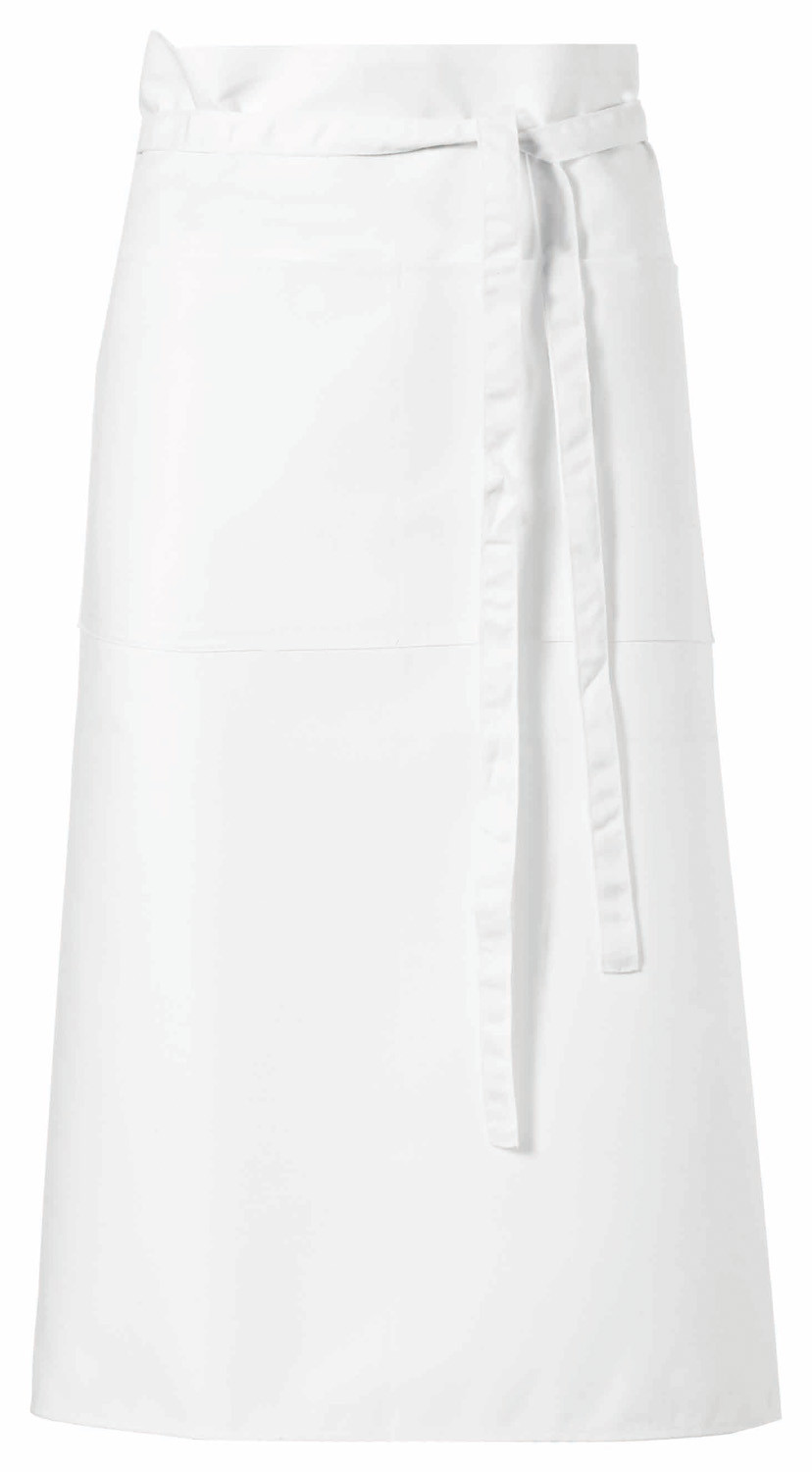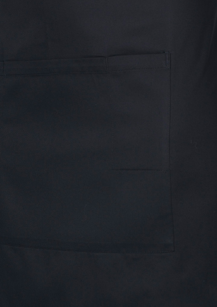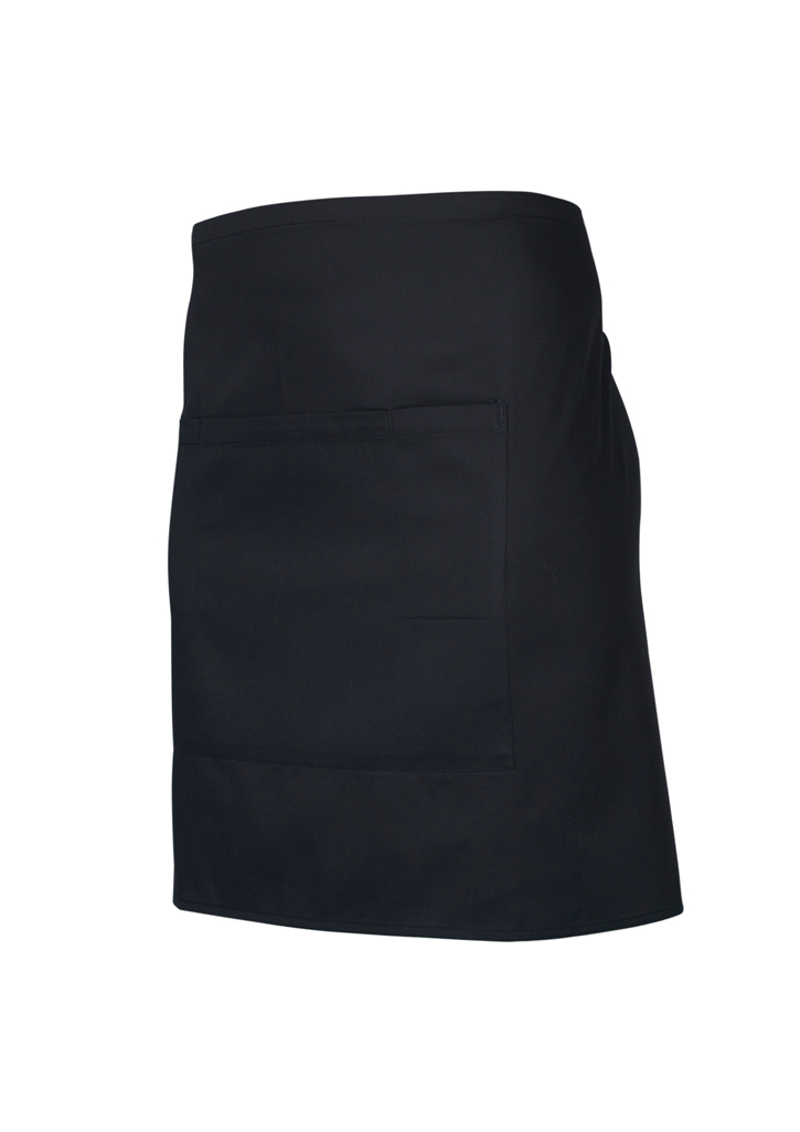 65% Polyester, 35% Cotton Twill 190 GSM. Short waisted, above the knee length. Unique styling. Towel loop at back of apron. 1 Large central front pocket with special side slide pen and bottle opener provision.