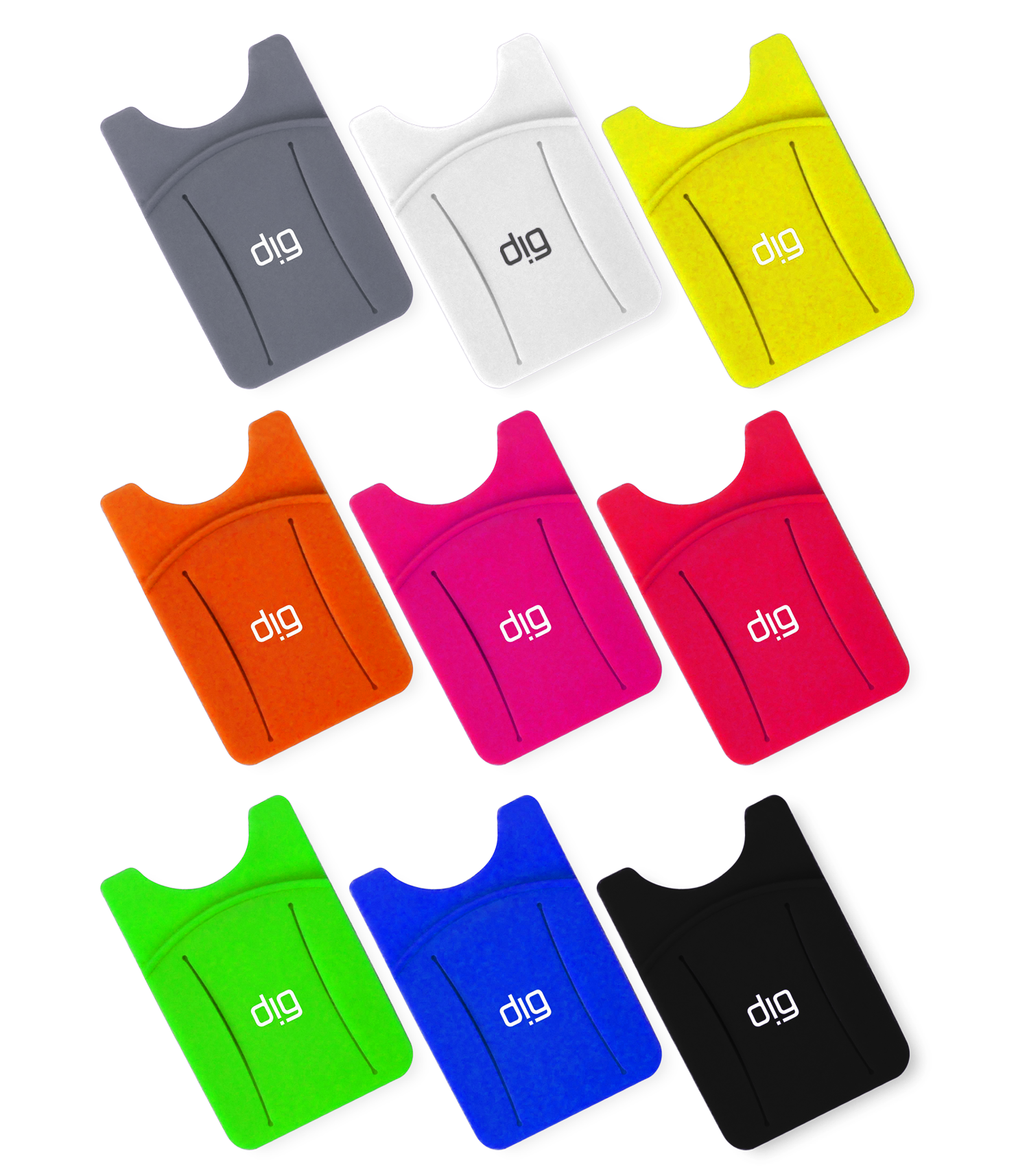 Silicone wallet used to hold cards, this also features a strap to help with holding the phone.