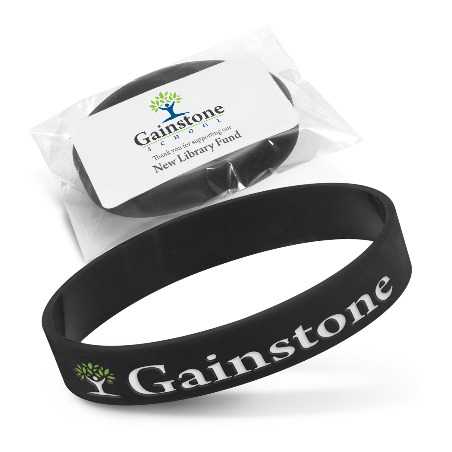 Silicone wrist bands have many uses and are ideal for fundraising, awareness campaigns, promotion and as admission bracelets for events. There is 14 standard colours and PMS colours are available on request. They are branded with embossing which raises the logo above the surface. All or part of the raised surface can be printed with up to two colours which is optional. One size fits all and they can be supplied in an optional polybag, with or without a full colour label. Decoration: Debossing | Digital Label