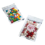 Silver Zip Lock Bag filled with Jelly Beans 50g Colours Chewy Fruit: Any mix of White, Blue, Green, Red, Yellow & Orange. Flavours :White - Raspberry, Blue - Passionfruit, Green - Apple, Red - Strawberry, Yellow - Pineapple & Orange - Orange Note: Ingredient Info: On each item (Sticker)