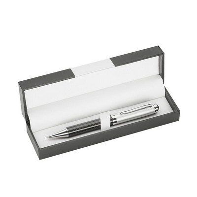 Manufactured from gloss black material with metal badge this pen box has a white velvet look interior with sash to hold pen.