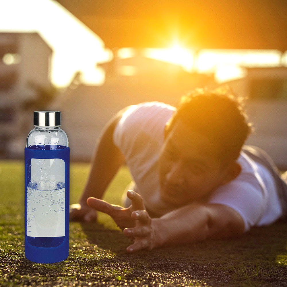 This single walled glass sports bottle comes with an outer silicone sleeve for protection. BPA free sipper. 500ml capacity.
