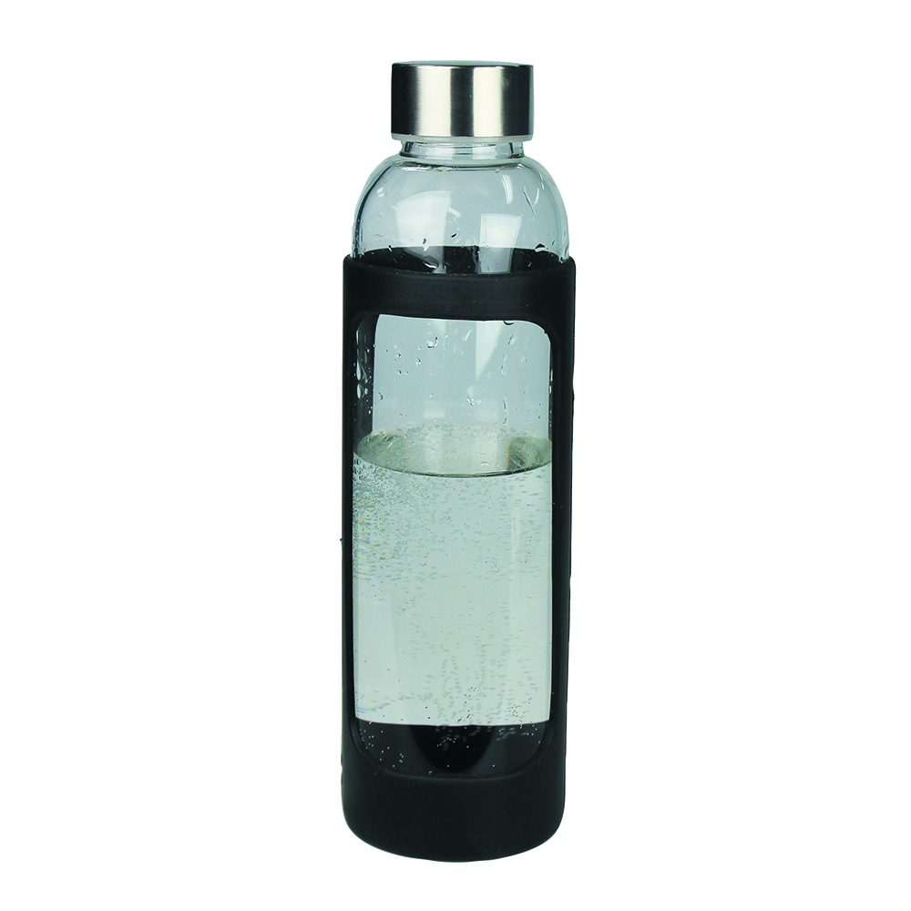 Sleeve Glass Drink Bottle with Stainless Steel Lid
