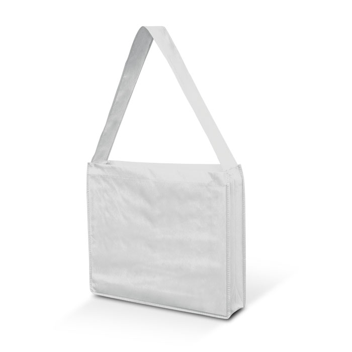 Large messenger style tote bag with a robust shoulder strap. Manufactured from 80gsm eco-friendly non-woven material which is able to be recycled. . Decoration options: Screen Print | Digital Transfer