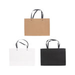 Small Crosswise Kraft Paper Bag With Handle is ideal for showcasing your elegant branding logos. These personalised paper bags are available to order in a choice of colours, sizes and printing methods. They can be supplied unprinted or custom printed, available with screen print, full-colour print, add-on stickers, add-on stamps, or hot stamping. These paper bags does not only have an excellent capacity for carrying all your goods, but also for displaying your company logo and name. Give them away at any promotional location or take them with you anywhere you go to increase your brand exposure! Material - 250gsm paper