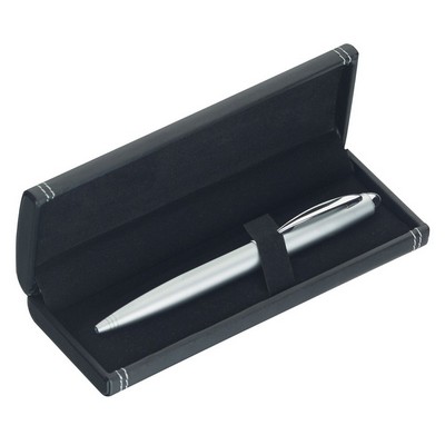 Smooth black imitation silk gift pen box with contrast stitching. (Pen not included)
