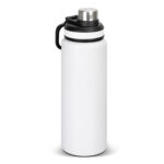 The perfect drinking companion, this 900ml single wall drink bottle is made from stainless steel and comes with a secure screw on lid featuring a silicone band for extra grip. This water bottle comes in a sleek matte black or a white high gloss paint finish, along with a convenient carry handle. this bottle is the perfect blend of style and practicality, and is presented in a natural gift box. This product is not dishwasher safe, and handwashing is recommended.