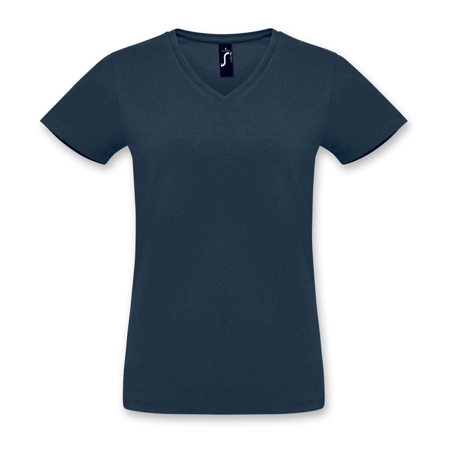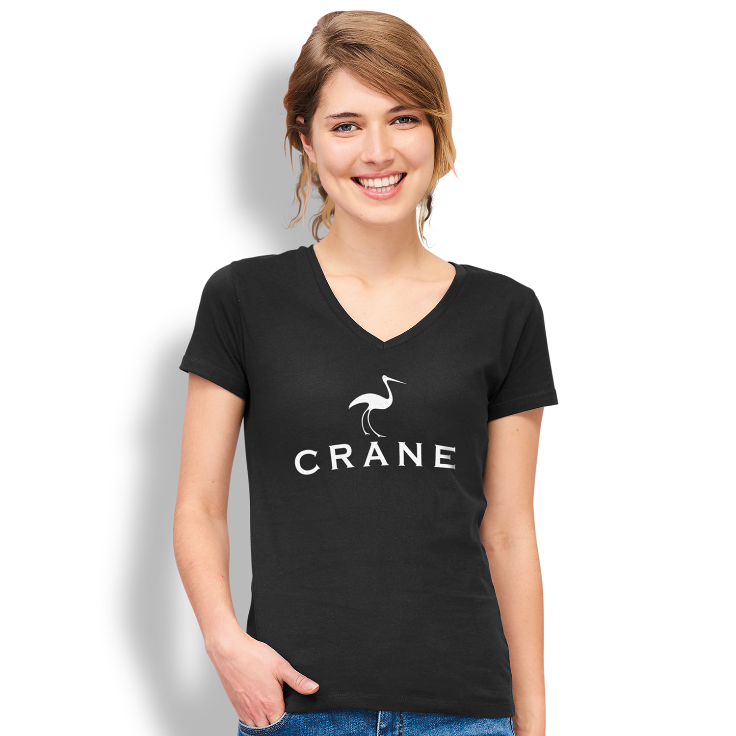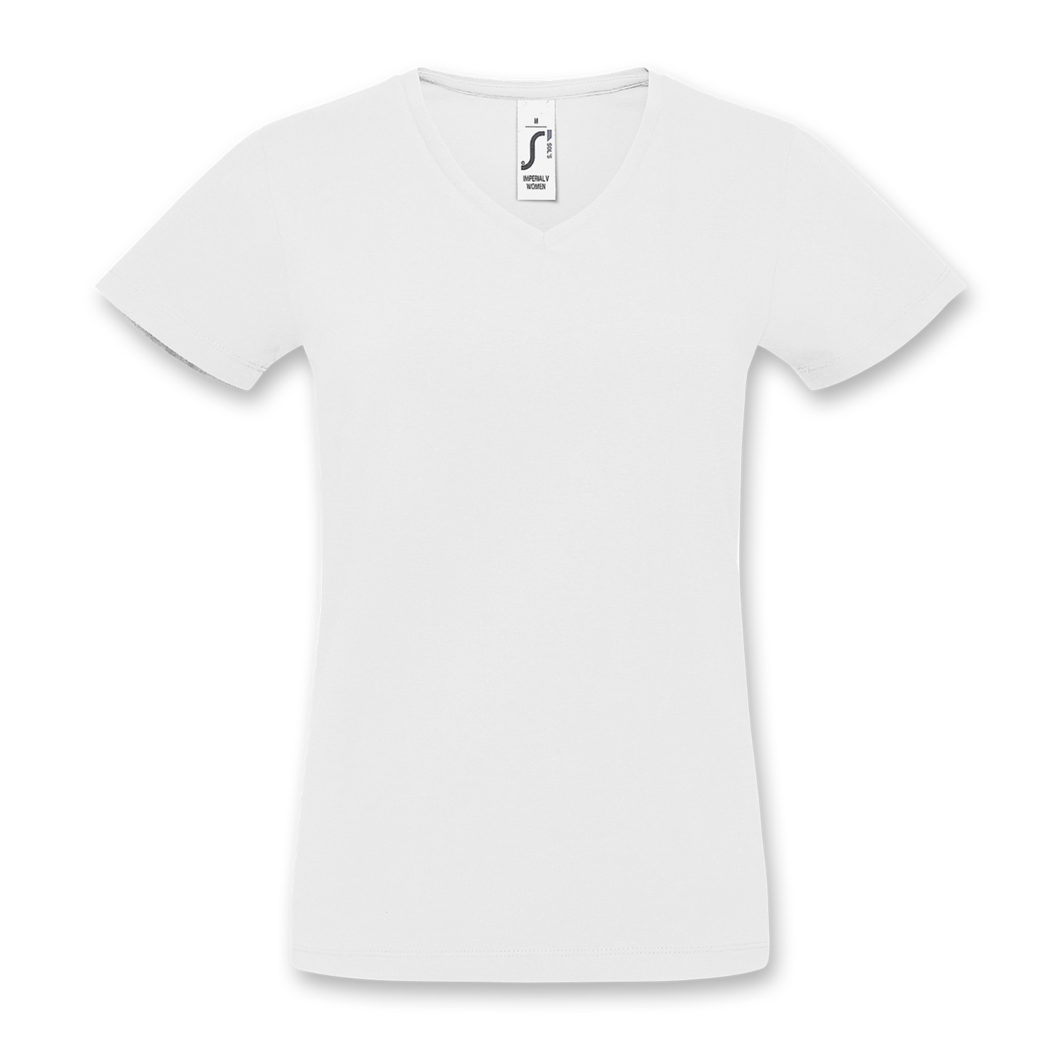 Smart women’s cut and sewn, short-sleeved V-neck t-shirt. It is manufactured from a blend of viscose and 190gsm heavy jersey, semi-combed ring-spun cotton which gives the garment a soft, smooth feel as well as providing an excellent branding surface. The elastane ribbed collar has tape reinforcing to strengthen and maintain the collar shape. The t-shirt is a European fit and is available in six sizes.