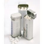 Stand Up Hinge Tin with Sugar Free Mints Colours: Silver Tin Note: Ingredient Info: On each item (Sticker)