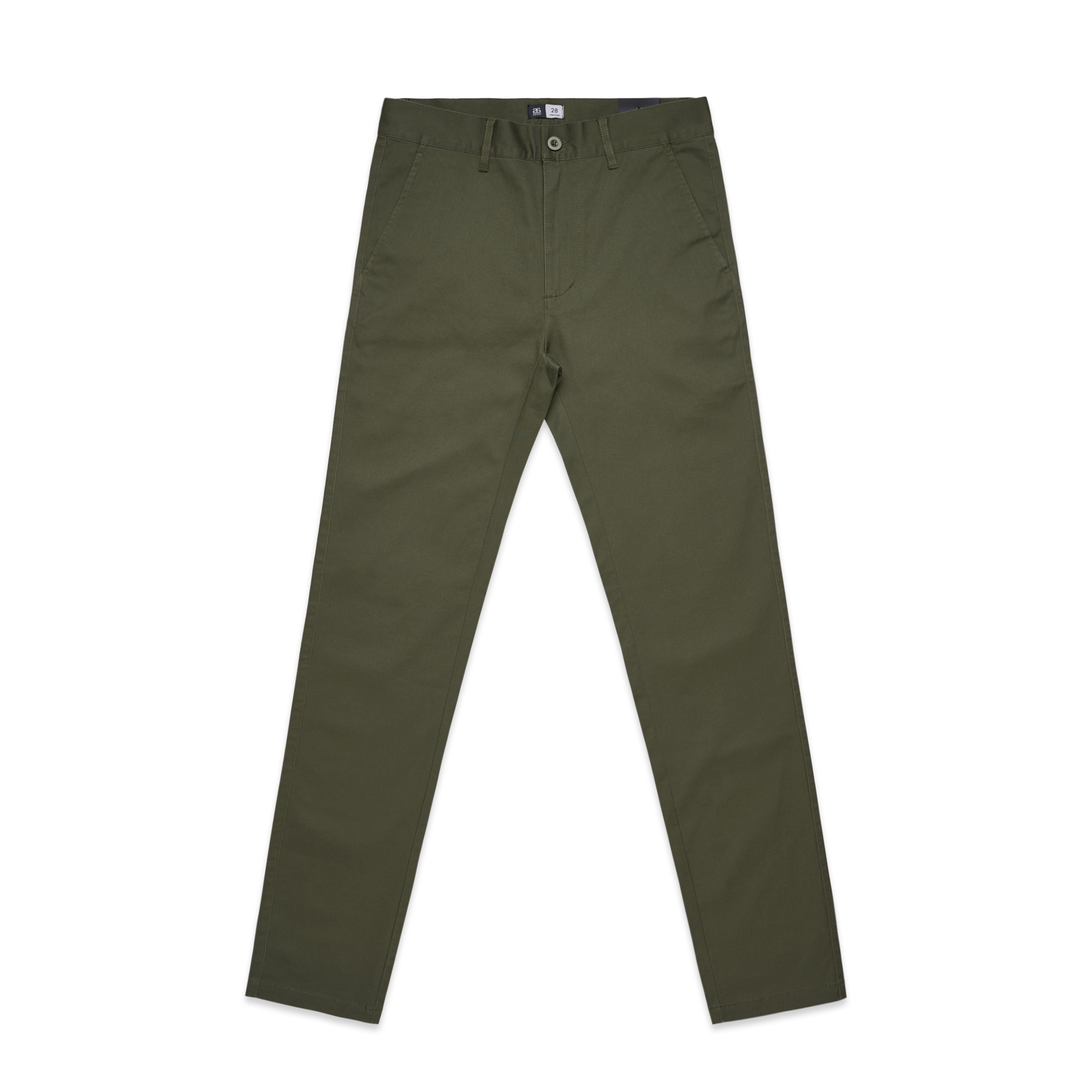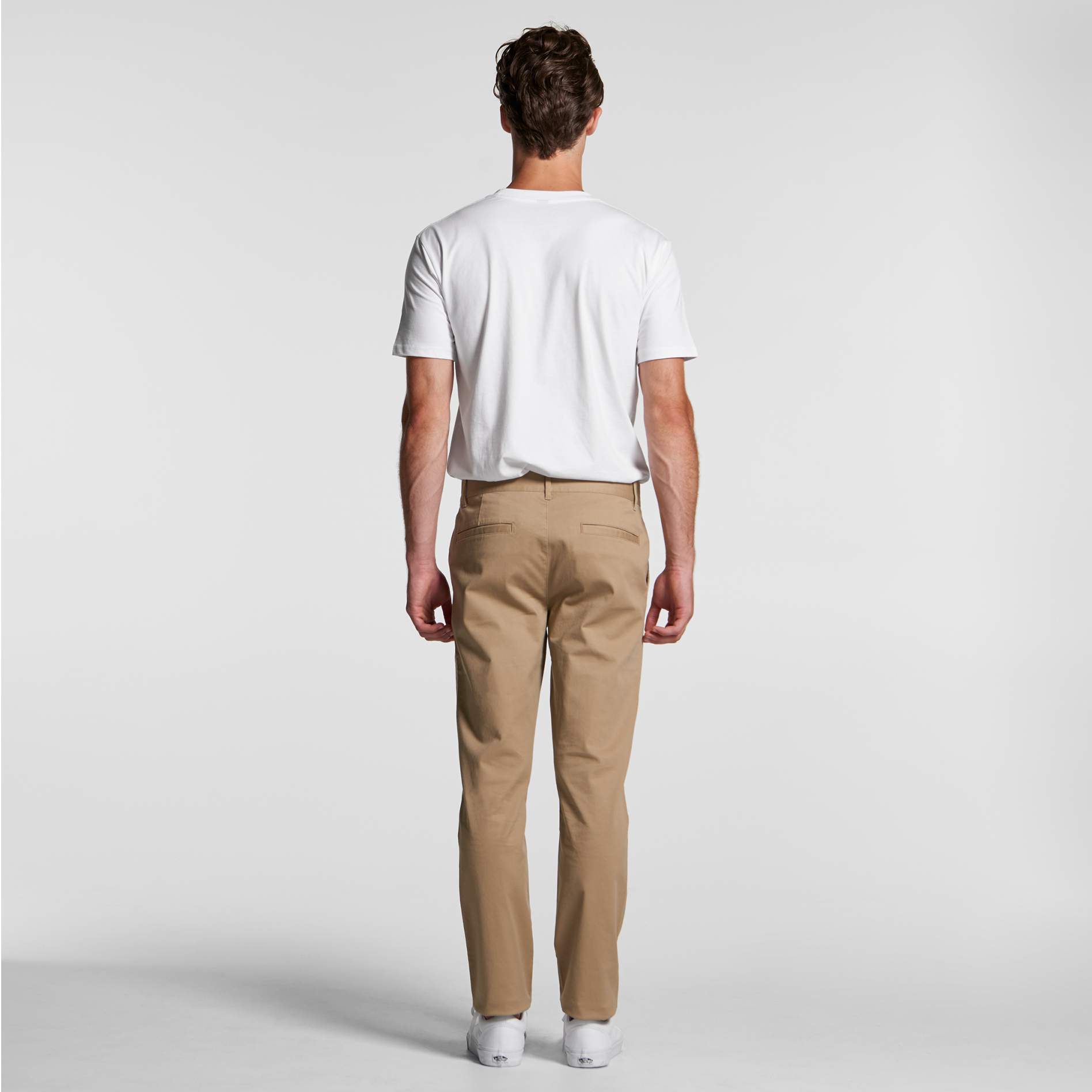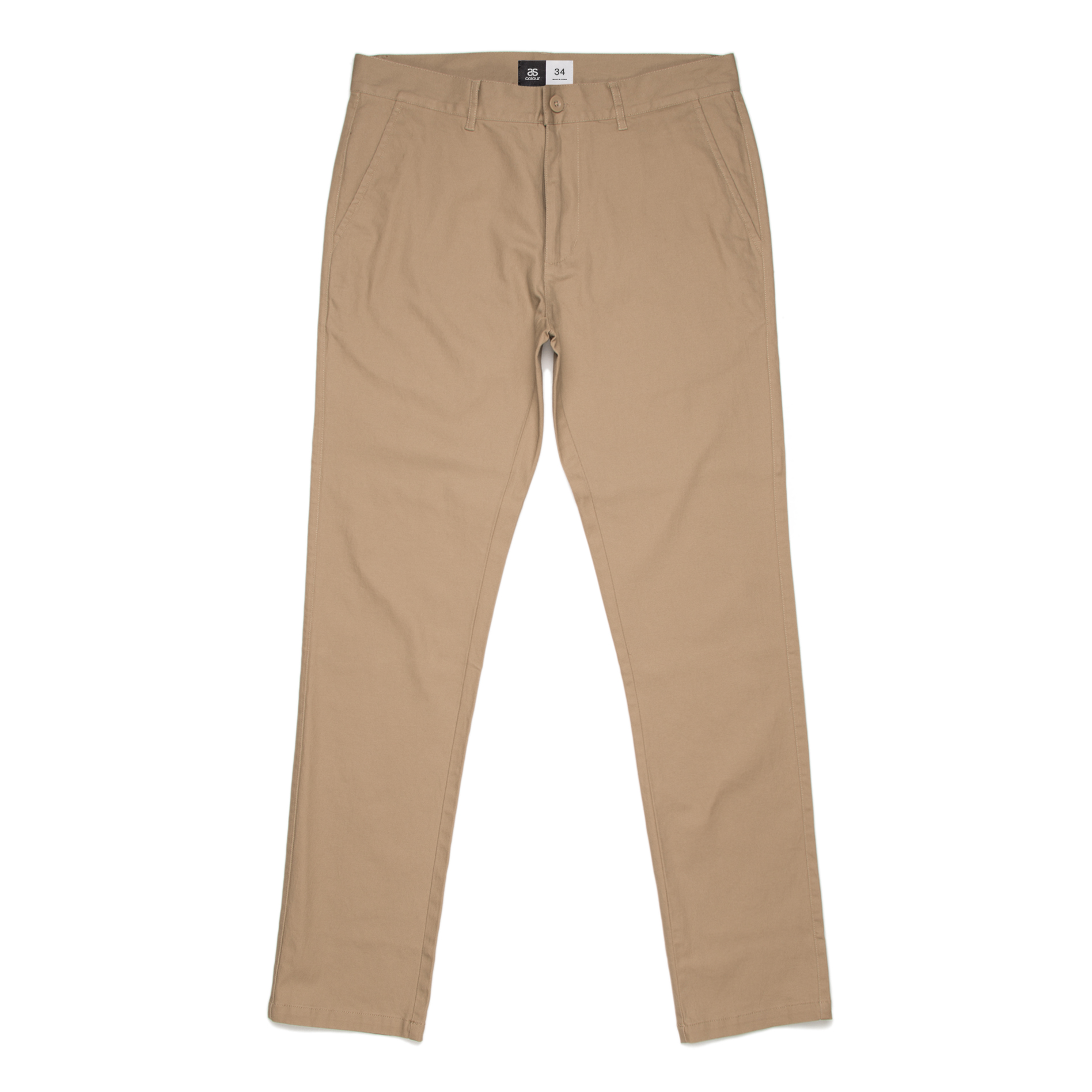 Slim-Regular fit, chino pants, 2 side pockets, jet pockets at back, mid weight, 250 GSM, 98% cotton 2% elastane, belt loops on waist, button closure, anti-brass metal YKK zip fly, preshrunk to minimise shrinkage