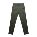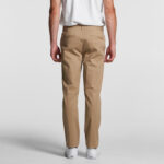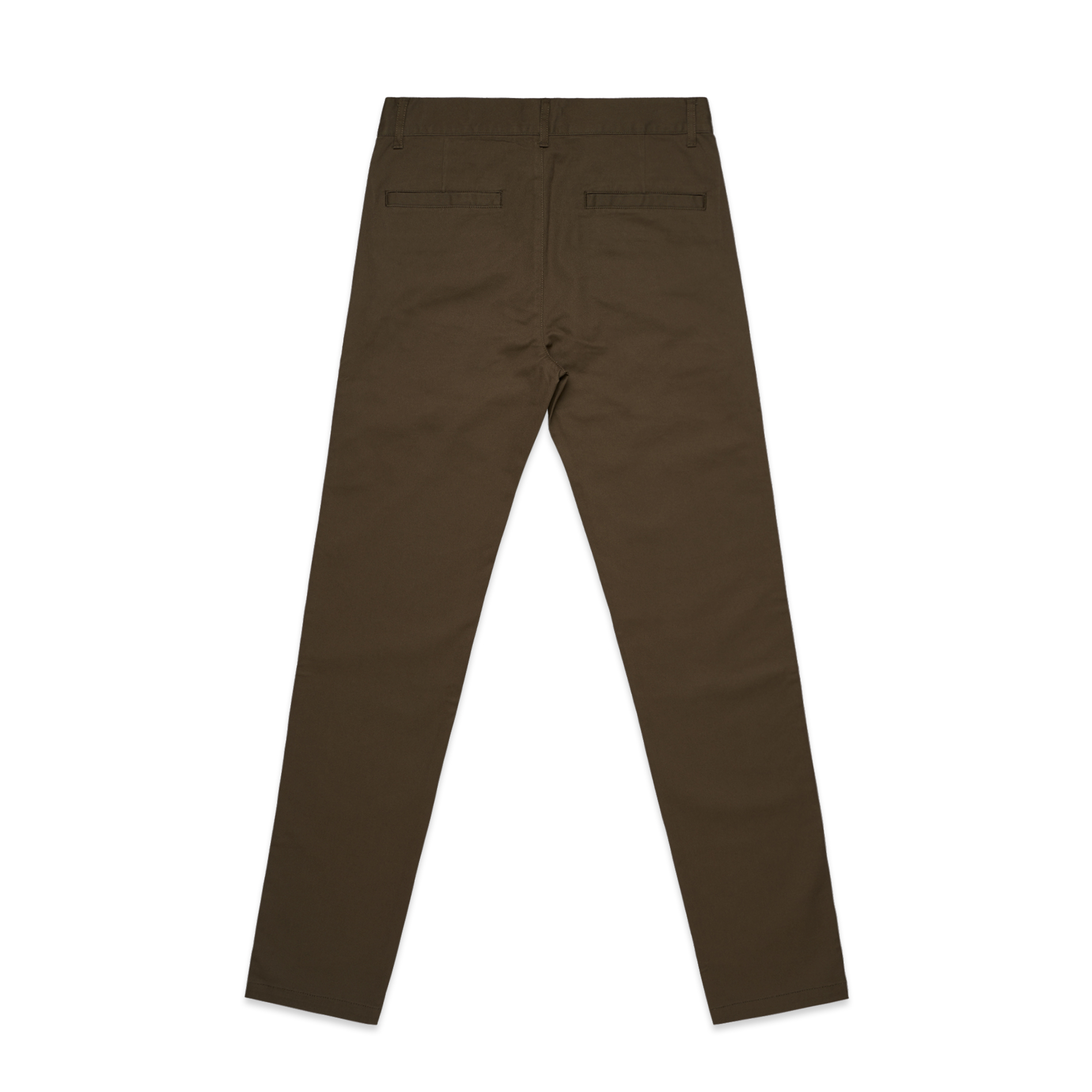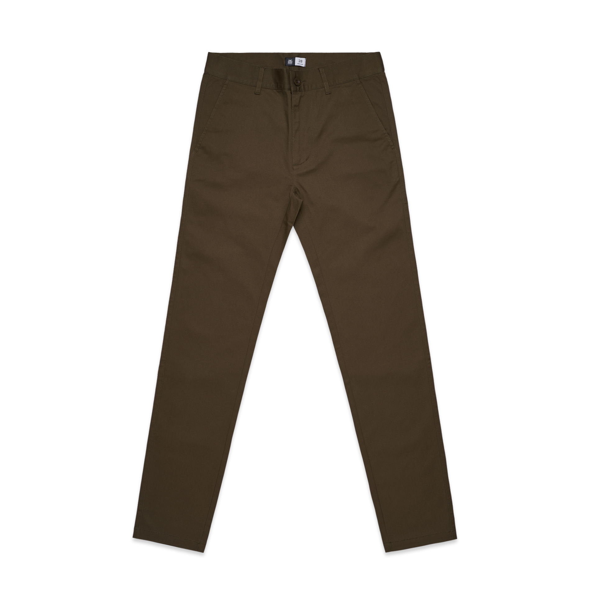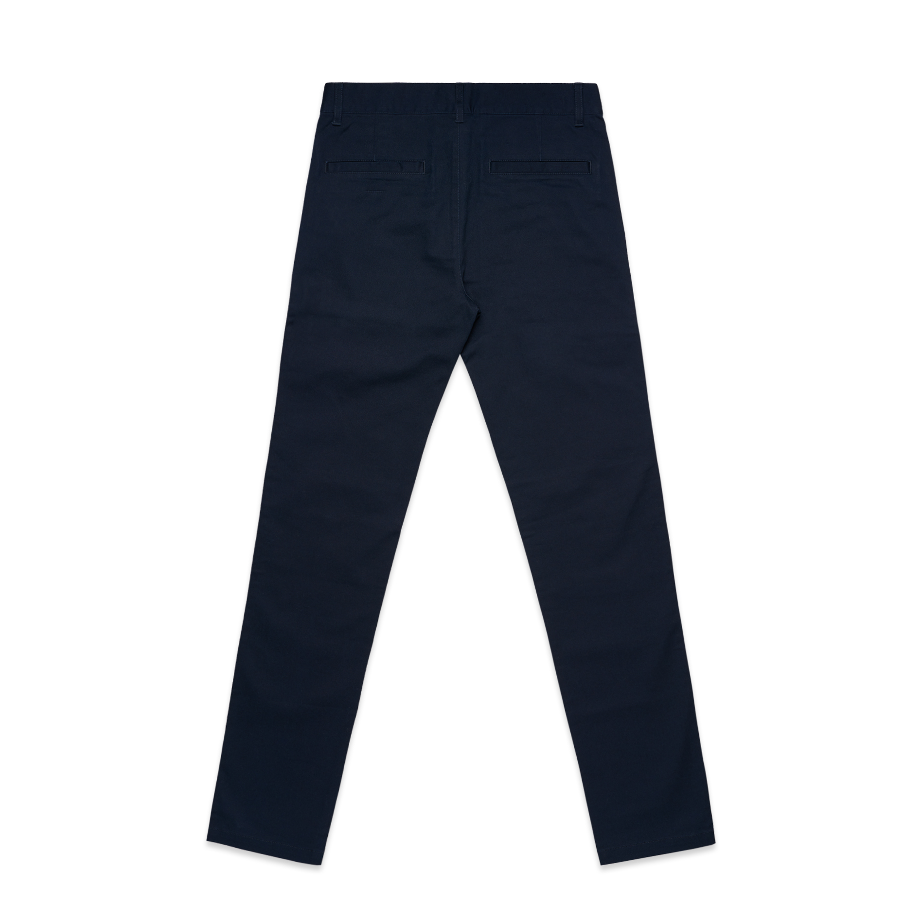 Slim-Regular fit, chino pants, 2 side pockets, jet pockets at back, mid weight, 250 GSM, 98% cotton 2% elastane, belt loops on waist, button closure, anti-brass metal YKK zip fly, preshrunk to minimise shrinkage