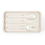 2-tier lunch box with bamboo lid that features a phone holder making it easy to enjoy lunch and stay connected at the same time. Made from a 50% blend of wheat fibre and BPA-free polypropylene. It has two compartments that allow for meal separation, with the knife, fork and spoon retained in the middle compartment and an elastic strap. Eco friendly alternative as a zero waste product and is a great alternative to plastic wear. It is important to note that this lunch box is suitable for reheating food in the microwave but not for cooking. Hand washing is recommended to maintain the longevity of the logo on the lunch box. Eco Credentials: Wheat fibre - by product, reusable, printed using reusable energy.