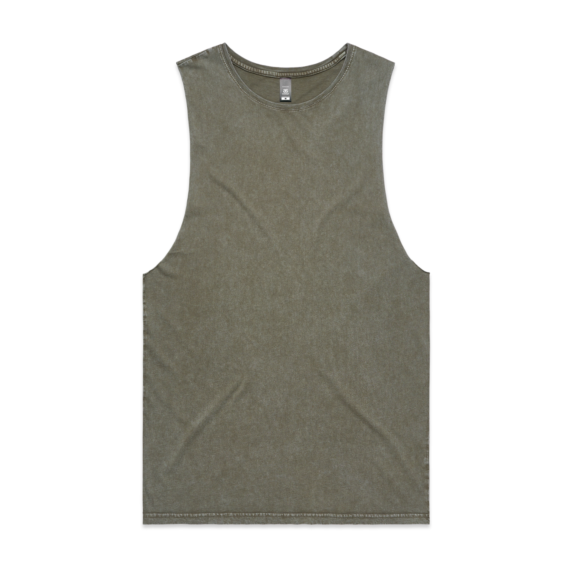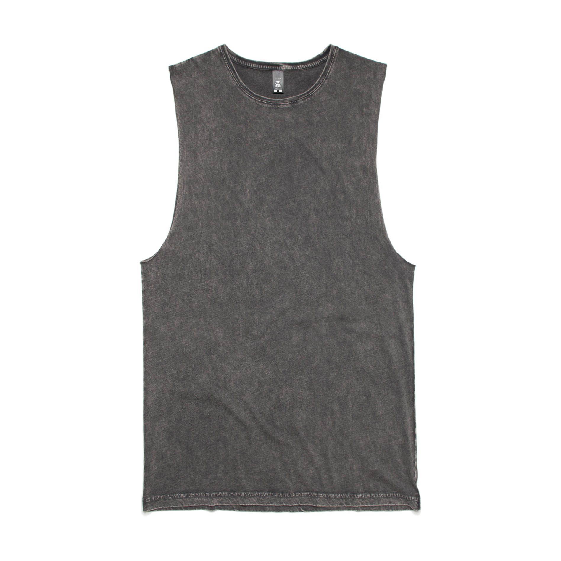 Regular fit, sleeveless tank, raw armhole edges, stone wash finish with a worn look, mid weight, 160 GSM, 32-Singles, 100% combed cotton, ribbed crew neck, shoulder to shoulder tape, double needle bottom hem, preshrunk to minimise shrinkage