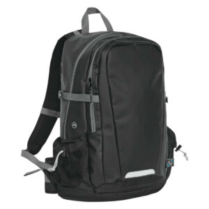 All-season, lightweight, 100% waterproof fabric backpack designed for versatility and durability with technical features including back padding with breathable mesh, laptop compartment, and multiple two-way zippered compartments.