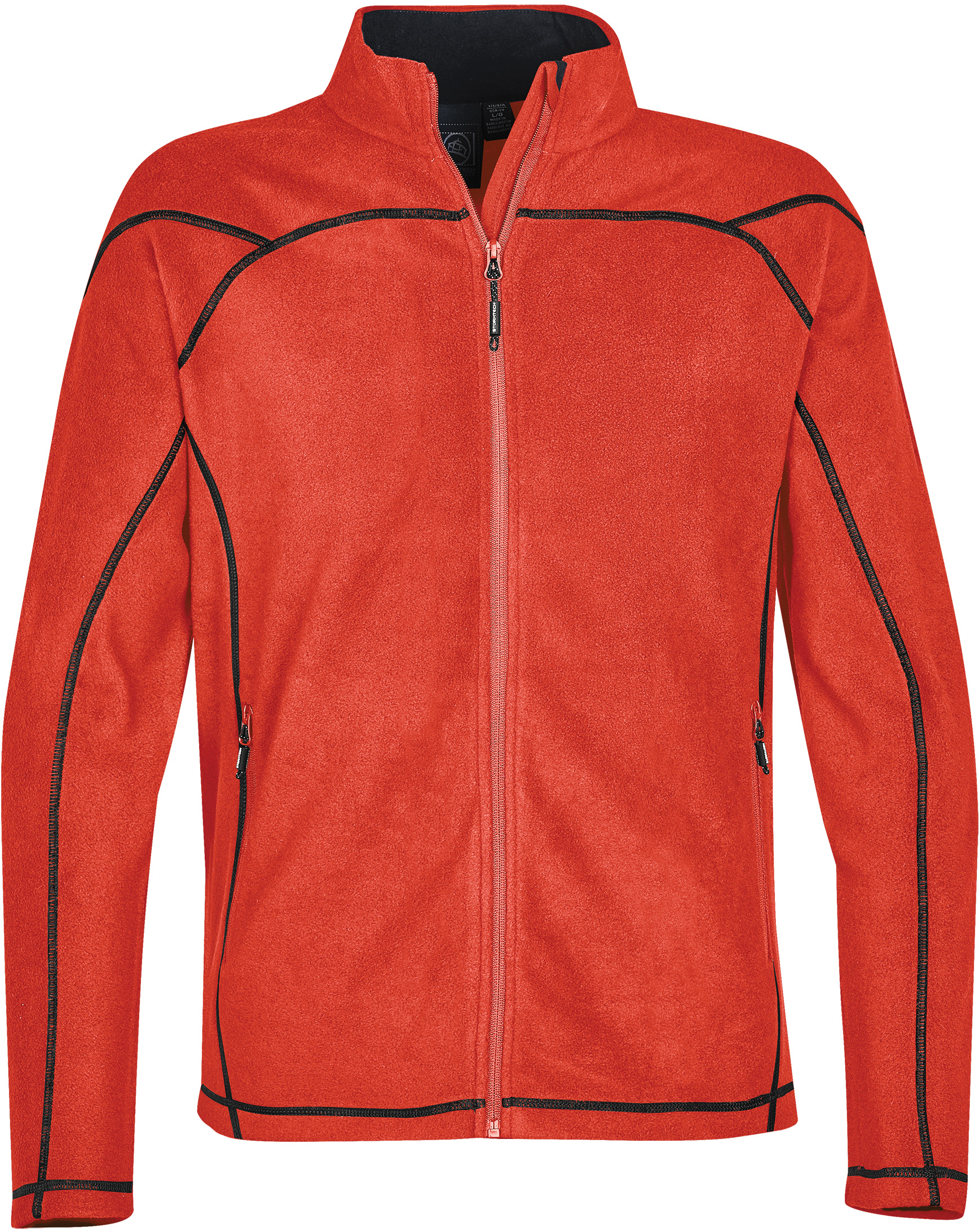Lightweight, anti-pill polar fleece jacket features a centre front zipper, chin saver, zippered pockets, with contrast cover stitching for added styling.