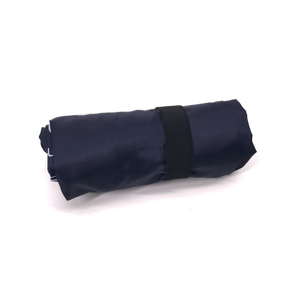 Made of 190T nylon. Wide long handles with base gusset. Elastic band holds the folded bag into small size. Handles approx. 70 cm L x 5 cm W