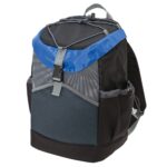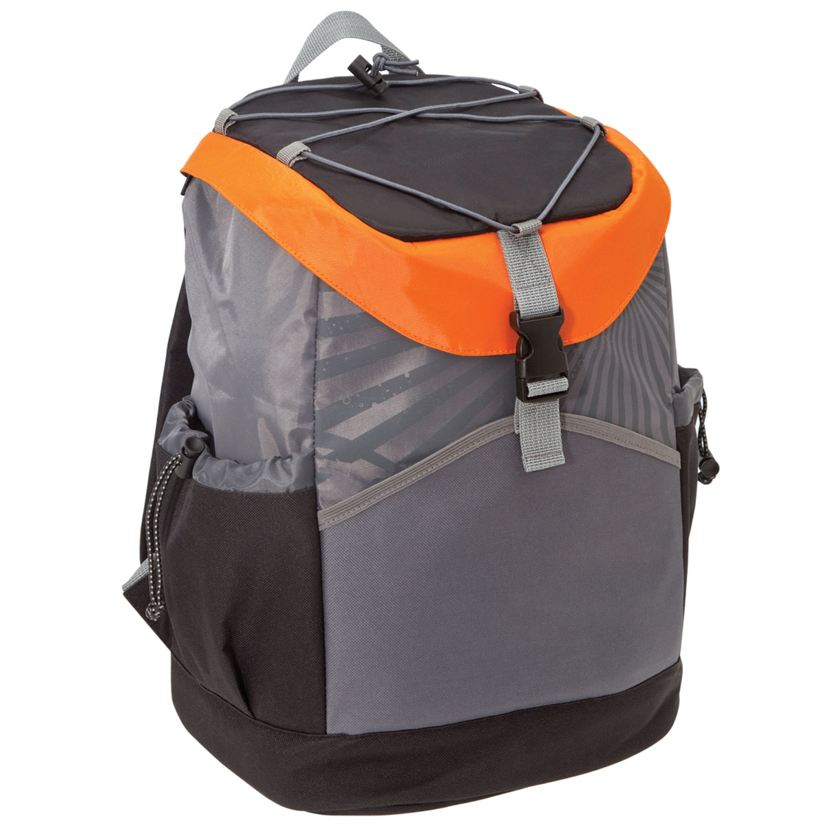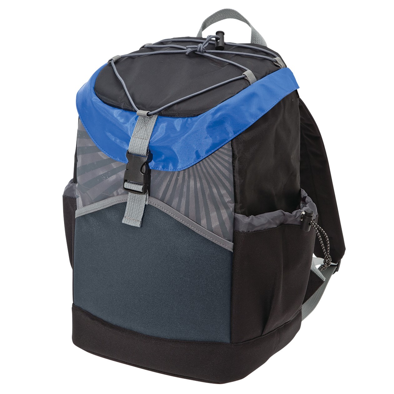Company picnics will be easier with the Sunrise Cooler – backpack style for easy transport, secured lid, a number of additional pockets and a business card holder. 420D and 600D polyester. Padded back and shoulder straps. Lid secured by concealed zipper and side release clip. Side pockets with cord and toggle. Webbing carry handle. Draw cord with toggle on lid to secure loose items. Front slip pocket. Business card holder on back