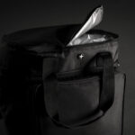 Deluxe 16L Swiss Peak Cooler Bag with thick PE foam insulation encased in a waterproof PEVA inner liner. The outer construction features a stylish combination of 1680D and 600D polyester. It has strong woven carry handles with a Velcro cuff as well as an adjustable and removable woven shoulder strap with a shoulder pad. Other features include a large zippered top closure, a zippered pocket on the front and slip pockets on both sides.