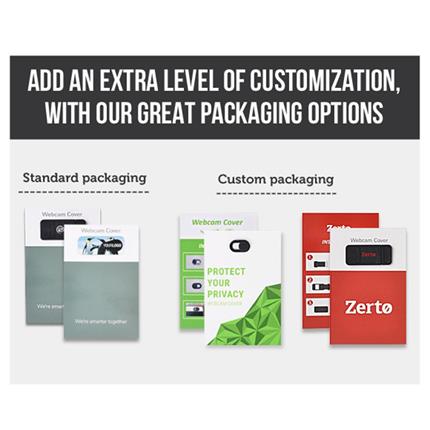 Whenever you are using devices with a built in camera, there is a risk that someone is secretly spying on you. Do not take this risk! To install a webcam cover now. Simple use your webcam cover with just a few steps. Just remove double sided tape tabs, position over the webcam then press firmly for a few seconds. Once installed, simply slide to the left to close or slide to the right to open. It comes with new overall full colour printing options, which is the best printing method for your brand. Custom card is also available. Material - ABS