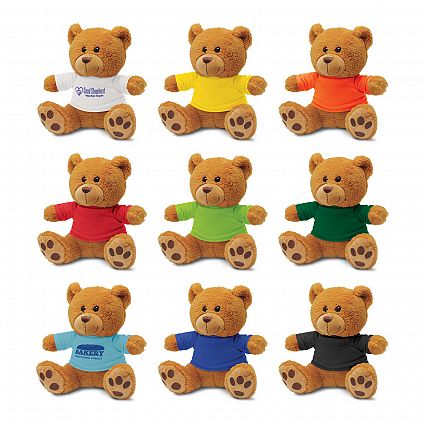 20cm soft teddy bear with the choice of nine t-shirt colours which can be branded. Cute, cuddly teddy bears are very popular for developing brand recognition and creating goodwill with people of all ages.