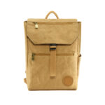 This backpack is designed to be durable, stylish, and highly functional, making it a great choice for various activities. The combination of washable kraft paper and canvas materials gives it a unique and modern appearance, while the multiple pockets and compartments offer ample storage options for your belongings. It is manufactured from German 0.55 pre-washed brown washable kraft paper with gray canvas inner lining. Features top zip closure, polyester cotton webbing handle, adjustable brown canvas shoulder strap, and multiple pockets such as: a zip pocket on lid, front and right side, and one bottle pocket on the right side. It also has a laptop compartment, and one zip pocket, 2 open pockets inside the bag.