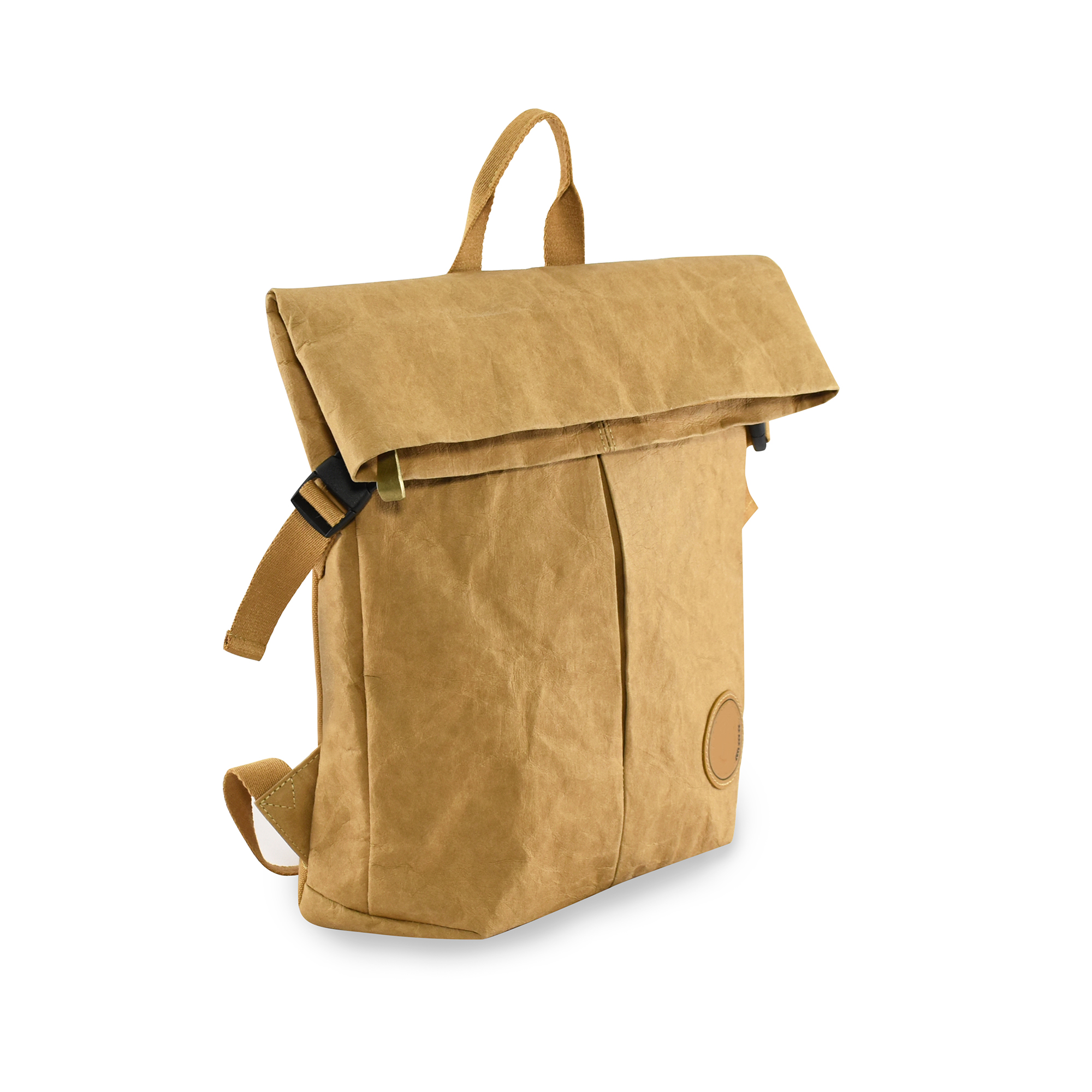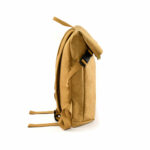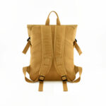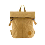 The View Kraft Paper Laptop Backpack combines durability, functionality, and style. Made of German 0.55mm washable kraft paper material with gray canvas inner lining gives it a unique and eco-friendly touch, while the combination of different materials and pockets offers practicality and organization. With a laptop compartment and a front panel zipper pocket, it allows users to carry their electronic devices and essentials conveniently and securely. It has a polyester cotton webbing and adjustable brown canvas shoulder strap with top zip closure.