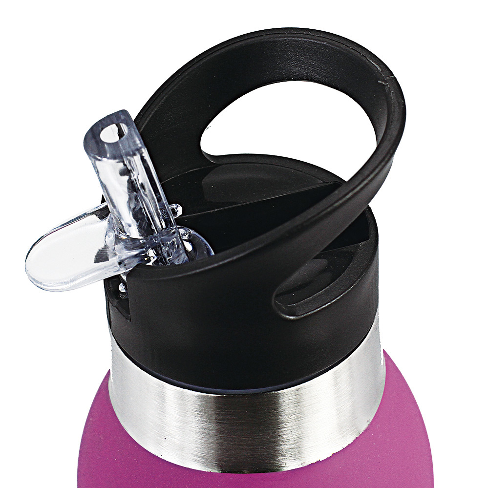 Rubber Paint Finish double wall stainless steel drink bottle, vacuum Insulated with straw and sipper, capacity 500ml