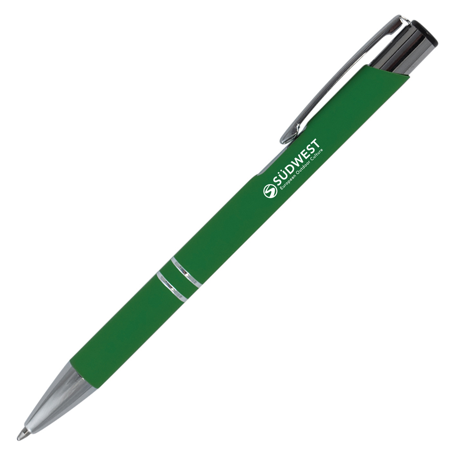 Push action aluminium pen with rubberised finish. Black ink refill.